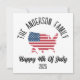 Fügen Sie Ihren Amerikanische Unabhängigkeitstag-Feiern und Familienfeiern eine festliche Touch hinzu..................................................................................................................................................................................... Das Highlight? Eine personalisierte Familienname Funktion! Fügen Sie dem Design Ihren Familiennamen hinzu, wie z.B. "The Smith Family", und erstellen Sie eine einzigartige und durchdachte Urlaubskarte, die Ihnen wirklich gehört.