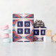 Ein Kaleidoskop in Rot, Blau und Weiß bedeckt dieses einzigartige Packpapier. Das Design ermöglicht es Ihnen, das "4-Buchstaben-Wort" "L O V E" durch Verwendung der aktuellen Platzhalterbuchstaben zu einer beliebigen Ihrer Wahl zu wechseln.