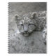 4 Monate alter Schneeleopardenbecher über einen Fe Notizblock