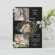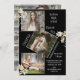 Personalisierte 4 Foto Collage Graduation Party Ankündigung mit schicken schwarzen Hintergrund. Geprägt mit süßen Aquarellfarben, weiße Molkereien. Einfach und süß. Fügen Sie Ihre speziellen Fotos hinzu, um Ihre eigene persönliche Ankündigung zu erstellen. Andere Farben und Stile verfügbar.