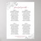 Dieses schöne 4-Tisch Hochzeitsstühle Diagramm beinhaltet Tischbelegungen für 40 Gäste, mit 10 Personen an jedem Tisch. Das Design ist schlicht und elegant mit grauer und staubiger Rose oder violett-rosa Texten auf weißem Hintergrund und einem zartem Blumenfiligrane in den Ecken und einem extravaganten Schriftzeichen mit dem Titel "Finden Sie Ihren Tisch". Raffiniert und elegant.