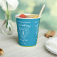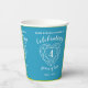 Blauer Topaz Farbhochzeit feiert 4 Jahre Liebe Jubiläum Party Papier Tasse. 4 Jahre Liebe feiert, eine einfache Herz-Stein-Effekt-Linie Kunst Grafik in weiß auf einem blauen Hintergrund personalisierten Becher. Passen Sie sich mit Ihren eigenen Namen oder Beziehungen, ihren Jubiläumsdaten an. Weitere passende Artikel sind verfügbar. Der vierte Hochzeitstag steht im Zusammenhang mit dem blauen Edelstein Topaz und das Herz symbolisiert Liebe. Original-Grafik und Design von Sarah Trett für www.mylittleeden.com und