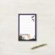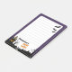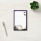 Dieses personalisierte Post-it ist ein verspieltes Halloween-Thema mit einem lila Rahmen, der einen weißen Schreibbereich umrahmt, der für eine einfache Notiz gereicht. Die obere rechte Ecke ist von drei schwarzen fliegenden Fledermäusen Spuk, während der untere Teil mit einer sprichwörtlichen Silhouette eines Spuk Hauses mit leuchtenden orangefarbenen Fenstern, blätterlosen Bäumen und gekrönten Friedhofkreuzen geschmückt ist. In der Mitte des Sockels, der Phrase "Trick or Treat" Pop in einem lustigen, kühlen orangen Schriftart. Dieses Post-it ist vollständig anpassbar und ermöglicht es Ihnen, den Namen zu ändern, sodass es die perfekte Saisonauflage für Halloween-Partys, Themennotizen oder festliche Erinnerungen ist.