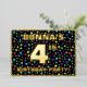 The front of this eye-catching and upbeat fourth birthday celebration/party foil invitation card design features a customizable name, a large number “4th”, the message “BIRTHDAY PARTY!”, and a border. The background of the front has an exciting, multicolored pattern of stars. The back features personalized details about the event, such as the date, time, venue/location, and any other information that may be important. Editable invitations like these might be a fun way to invite attendees/guests to a birthday gathering/party being held to celebrate somebody’s 4th birthday. [~Z0000600]