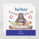 This fun and festive invitation card features a glamorous Hippo in a bikini pool party theme.