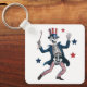Bring some playful patriotic charm to your accessories with this dancing skeleton keychain. Featuring a lively skeleton dressed in red, white, and blue attire, this fun design captures a spirited celebration of American pride. With a cane raised high and a joyful dance pose, it’s the perfect mix of spooky and festive. Ideal for adding character to your keys, bags, or backpacks, this keychain makes a great gift for anyone who loves quirky Americana style or unique skeleton art.