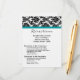Diese 4x5 Sized Black Damask Aquamarin Turquoise Empfang und Zeremonie Directions Card ist perfekt für alle Paare, um innerhalb ihrer Hochzeitseinladungen zu platzieren, damit ihre Empfänger den Weg zur Zeremonie und zum Ort des Empfangs haben. Diese sind mit Standard-weißen Umschlägen versehen, aber Sie können diese einfach wegwerfen, da Ihre Gäste diese nicht benötigen.