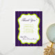 Diese bezaubernde 4x5 FLAT Dankeschön-Karte ist perfekt, um Ihren Gästen für die Geschenke, die sie mitgebracht haben, zu danken, oder auch nur für ihre Firma bei Ihrer Veranstaltung. Ideal für eine Babydusche oder Geburtstagsparty! Diese sind vollständig anpassbar, und das Gedicht kann entweder vollständig entfernt werden, indem man einfach den Text ganz zusammenlöscht, um Platz für eine handgeschriebene persönliche Nachricht verlassen, oder man kann sich mit seinem eigenen Gedicht oder Text anpassen. Diese sind auf glattem, lebhaftem, mattem, 110lb-Cover-Papier gedruckt. Enthält 50 % gerecycelt Inhalt. Ideal für Ihre formellsten Einladungen, Dankeschön-Karten und Veranstaltungshinweise. Diese sind mit Standard-weißen Umschlägen versehen. Wir haben eine ganze Linie für dieses Design hier im zazzle-Geschäft unter der * Design Collections Menü-Registerkarte gewidmet Einladungen (12x18), Return Labels, Mailing Labels, Umschlag Aufkleber, Postage Briefmarke, Cup Cake Picks, Water Bottle Wrappers, Hershey's 1,55 oz. Große Bar Wrappers, Hershey's Miniaturkleber, Microwave Popcorn Beutel Wrappers, Schreib-Platzkarten, Goody Bag Toppers, FLAT Dankeschön Karten (4x5), bedankte Karten (4x5), Gefallen Tags, Menü-Karten, Minze-Matchbooks, Lollipop Covers, Lesezeichen, Bingokarts, Bingokarte Markierungen B. Bingo Card Call Out Sheets, Writable Advice Cards (4x5), etc.