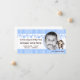 Diese 4x8 Sized adorable Blue Boy Pop Monkey Foto Birth Announcement ist sowohl trendig als auch chic. Es ist auf glattem, lebendigem, mattem, 110lb-Cover-Papier gedruckt. Enthält 50 % gerecycelt Inhalt. Ideal für Ihre feierlichsten Einladungen und Veranstaltungshinweise. Diese sind mit Standard-weißen Umschlägen versehen.
