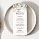 4x9" Winter Evergreen Weihnachtsmenü Dieses Eventmenü mit Aquarellklirrrn, neutralen Farbtönen und einem modernen Schriftart. Ideal für Brautparty, Hochzeit, Geburtstagsfeier oder Probe! Text- und Grafikfarbe ist editierbar.