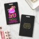 Bold 50 and Fabulous 50th birthday matching CRUISE CREW badge for each member of your party. Designed with gold and pink typography against a black background. Ideal for glam fiftieth cruise celebrations. Add your destination or other text at the bottom, and further details on the reverse.