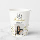 50 and Fabulous Gold Glitter Photo 50th Birthday Party Paper Cups. The design has faux gold glitter dots and the saying 50 and fabulous is in modern script. Make your own 50th birthday party cups for her. Customize with the name, age and insert your photo into the template.