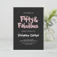 Fifty and Fabulous pink and black modern 50th birthday invitation that you can personalize and send out for your fiftieth birthday party celebration. The words "Fifty and Fabulous" are set using popular font typography. The text colors can be changed using the edit menu.