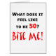 Wie was glaubt es, 50 zu sein? Beißen Sie mich! Humorvoller Entwurf für die 50 Jährigen, der nicht über das Drehen 50 glücklich ist und ein Warnzeichen für andere. Macht ein großes 50. Geburtstagsgeschenk.