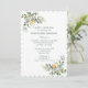 Was für eine schöne Art, Einladungen für Ihre 50. Goldene Hochzeit zu versenden. Auf weißem Hintergrund mit Blumenmotiven in der Ecke, die alle Details des Party in blassblauem Text enthalten.
