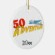 Auf einer Seite dieses Keepsake-Ornaments befindet sich ein Flugzeug, das über abenteuerlichen Text fliegt, der lautet: "50 - das neue Abenteuer". Laden Sie Ihr eigenes Foto auf der umgedreht Seite dieses Ornaments hoch, das in Gold gerahmt ist. Dieses Design ist ein großartiges Geburtstagserinnerungsgeschenk für die besondere Person in Ihrem Leben, die ein Action-Film-Fan oder für ein abenteuerliches Party ist.