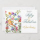 Eine 50. & Fabulous Celebration Invitation - Schöne Whimsical Blume, Blüten und Schmetterlinge, mit Hundepfoten erstellt, kreativ Aquarell vom Designer gemalt. Farbenfroh, delikat, aber lebendig und lustig. Sie werden nie etwas wie diese Drucke sehen, da sie exklusiv für den Designer sind, so einzigartig und anders sein und Ihre Freunde und Familie mit diesem wunderschönen Design mit einem Gelben Vogel zu verzaubern. Karo aller passenden Zubehörteile