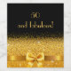 Elegant, klassisch, glamourös und weiblich für einen 50. Geburtstag. Ein goldfarbenes Band und Bogen. Schwarzer Hintergrund. Mit dem Text: 50 und fabelhaft!