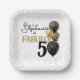 50 & Fabulous Black Gold Glam Square Paper Plate Pappteller