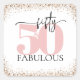 "50 & Fabulous" Minimal Rosa und Schwarzer Glitzer Quadratischer Aufkleber