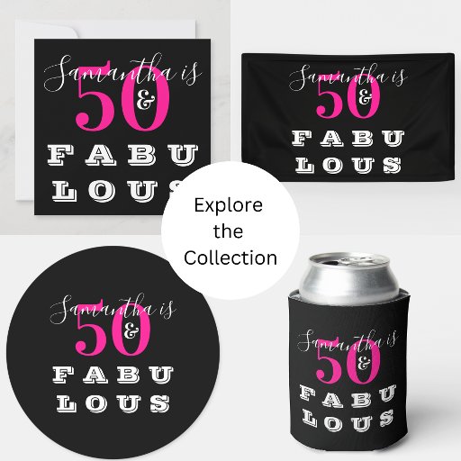 Das ist ein stilvolles, personalisiertes 50. Geburtstag, 50. Geburtstag, und fabelhaftes Typografie-Design. Es ist in heißen rosa und schwarz gehalten, mit stilvoller weißer Typografie. Ideal für eine lustige, schicke und unvergessliche 50. Geburtstagsfeier, ideal als Geschenk oder für Gastgeschenke. Dieses Design ist vollständig anpassbar. Um zu personalisieren, fügen Sie einfach Ihren Namen hinzu, indem Sie diesen Knopf personalisieren. Sie können auch die Erholung des Textes ändern, wenn Sie gewollt haben. Wenn Sie gewollt haben, die Farbe oder den Schriftart zu ändern, können Sie das Entwurfsbearbeitungsprogramm ausblenden. Wenn Sie Hilfe bei Personalisierung, passenden Produkten oder einem benutzerdefinierten Design benötigen, kontaktieren Sie mich über zazzle Chat oder per E-Mail: ursuladawnmoon@gmail.com