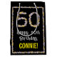 Dieses florale, in Botanik inspirierte Geschenktütendesign hat die Meldung "Happy 50 th Birthday", zusammen mit einem bearbeitbaren Empfängernamen. Die große Zahl "50" und der Rand beide verfügen über Blume-Symbole. Ein lustiger Geburtstagsgeschenksack wie dieser kann benutzt werden, wenn man ein Geschenk oder Geschenk zur Feier des fünfzigsten Geburtstages von jemandem gibt. [~Z0000653]
