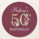 50. Geburtstag Burgund Gold Personalisiert Runder Pappuntersetzer