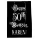 Dieses aufwändige und extravagante Geburtstagsgeschenkdesign zeigt die Meldung "Happy 50 th Birthday", in aufwändigem Skriptstil, auf schwarzem Hintergrund. Es hat auch einen benutzerdefinierbaren Empfängernamen. Eine Geschenktasche wie diese kann verwendet werden, wenn Geschenke umhüllt werden, die jemandem zum 50. Geburtstag geschenkt werden. [~Z0000557]