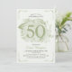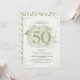 50. Geburtstagsfeier Einladung mit Dekorationsnummer 50. Dieses subtile und elegante Design verfügt über eine Aquarellwaschung mit zarten Wildblumen, Blattwerk und einem farbenfrohen Rahmen in Grüntönen.