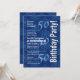 Dieses moderne Design in Blau und Weiß mit gemustertem Hintergrund ist eine elegante Art, Ihre Gäste zu einer 50. Geburtstagsparty einzuladen. Alle Texte sind vollkommen individuell anpassbar. Sie können die Textfarbe für ein anderes Aussehen ändern. Obwohl dieses Design auf einem Grundpapier ist, empfehle ich das hochwertige eisgeruhte Metallpapier, das Ihren Einladungen einen festlichen Schimmer und Glanz verleiht.