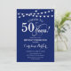 Einladung zum 50. Geburtstag. Einfaches marineblau-weißes Design mit Skript-Schriftart und Feen-String-Lichtern. Feiert bis 50 Jahre. Kann in jedem Alter personalisiert werden! Nachricht, wenn Sie weitere Anpassungen benötigen.
