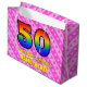 50. Geburtstag: Rosa Streifen & Herz, Regenbogen # Große Geschenktüte