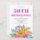 50. Geburtstag rosa tropische Aquarell Blüteneinladung. Einfach Ihren eigenen Text hinzufügen.