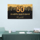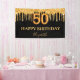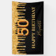 Elegant, klassisch, glamourös und mädchenhaft für eine 50. Geburtstagsfeier. Ein schicker schwarzer Hintergrund. Dekoriert mit Imitaten vergoldeten Glitzer-Tropfen, Farbe tropfend aussehen. Personalisieren und einen Namen hinzufügen. Mit dem Text: Happy Birthday plus den Geburtstag Mädchen Namen. Der Text ist mit einem modernen, goldfarbenen handgeschriebenen Schriftsatz geschrieben. Nummer 50 wird mit einem Schriftart im Ballonstil geschrieben. Kann als Begrüßungsbanner oder als Party-Wanddekoration verwendet werden.