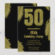 50. Geburtstag schwarzes Gold Glitzer Party Einladung
