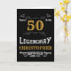 Eine personalisierte klassische Geburtstagskarte für die Geburtstagsfeier für jemanden, der 50 Jahre alt ist. Fügen Sie den Namen zu diesem Vintagen Retro-Stil Schwarz, Weiß und Gold für ein maßgeschneidertes 50. Geburtstagsgeschenk hinzu. Bearbeiten Sie den Namen und die Meldung einfach mit der bereitgestellten Vorlage. Ein wunderbares, individuelles, schwarzes Geburtstagsgeschenk. Mehr Geschenke und Party-Vorräte für das 50. Party-Fest mit dem "Legendary"-Design im Laden verfügbar.