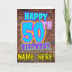 An der Vorderseite dieses lustigen Geburtstagskarten-Designs steht die Meldung "HAPPY 50TH BIRTHDAY", die ein farbenfrohes, lebendiges, graffiti-inspiriert Aussehen sowie einen editierbaren Empfängernamen hat. Der Hintergrund der Vorderseite weist ein Muster auf, das durch das Aussehen einer Ziegelwand inspiriert wird. Die Innenseite verfügt über eine individuell anpassbare Geburtstagsgrüßnachricht, oder könnte gelöscht und links werden, wenn eine Nachricht von Hand geschrieben werden soll. Eine lustige, personalisierte Geburtstagskarte wie diese könnte eine lustige Art sein, jemandem, der seinen fünfzigsten Geburtstag feiert, eine Geburtstagsgrüße zu senden. [~Z0000531]