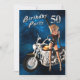Ein schönes Radfahrermädchen zeigt auf Ihre Party Einladung. Eine unwiderstehliche Einladung für Männer irgendeines Alters.