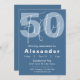Blauer und weißer Happy 50. Geburtstag Feier Einladung. Passen Sie Ihre Daten an!