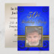 Eine elegante Party Einladung für einen Mann mit einem goldenen Rahmen für sein Foto. Fügen Sie ein Bild des Geburtstags hinzu, um diese Karte zu personalisieren.