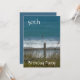 Diese wunderschöne Aussicht auf den Ozean, der mit einem Zaun und einem Strandrasen im Vordergrund einrollt, ist ein schöner Hintergrund für diese 50. Geburtstagsparty Einladung für den Gentleman in Ihrem Leben. Die Rückseite der Einladung ist fertig für kundenspezifische Anpassung.