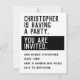 50. Geburtstagsparty Einladung in Schwarz auf einem weißen Hintergrund und in einem kühlen Design. Einladungskarte für Geburtstagsparty. 50. Geburtstagsfeier Einladungen.