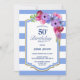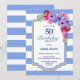 Blauer Streifen Blumen 50. Geburtstagsfeier Einladung.