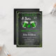 Feiern Sie einen besonderen Geburtstag im Stil mit diesem rustikalen "Cheers and Beers"-Tafel und schäumenden grünen Bierbrauer-Tasse Barroom-Look "Birthday Party"-Design mit grünen Konfetti-Punkten. Composite Design von Holiday Hearts Designs (Rechte vorbehalten).