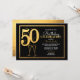 Elegant und elegant mit einer Touch Retro-Stil 50. Geburtstagsfeier Einladungen mit schwarzem Rahmen, Imitate Goldfolie-Underlay und "Klinke" Champagner Gläser unter der Nummer 50.