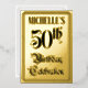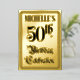 An der Vorderseite dieses aufwändigen 50. Geburtstags feiert die Einladungs-Folie die Nachricht "50. Geburtstagsfeier" in opulentem Text im Stilschriftstil. Es verfügt auch über einen individuelle Name. Auf der Rückseite finden Sie personalisierte Details zum Ereignis, wie Datum, Uhrzeit, Veranstaltungsort und andere nützliche Informationen. Extravagante, luxuriöse und individuelle Einladungen wie diese können genutzt werden, um die Gäste zu einer Geburtstagsparty/Feier einzuladen, die zum Feiern des 50. Geburtstages von jemandem abgehalten wird. [~Z0000596]