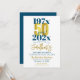 Eine wunderschöne 50. Geburtstagsfeier oder Feierlichkeiten. Dieses fabelhafte Blau- und Goldeffekttypografie-Design hat viel Platz für Ihre Party-Details - perfekt, um eine Feier für eine fünfzigjährige Geburtstagsparty anzukündigen. Diese stilvolle Einladung mit einer Karte bietet die Geburtsdaten und die aktuellen Termine für den 50. Geburtstag.