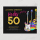 Personalisiert Rocks 50. Geburtstagsparty pink schwarz und gold Einladungen mit drei coolen Aquarellgitarren-Designs. Eine E-Gitarre mit farbenfrohen Mustern und weißem Pick-Guard, eine bunte semiakustische Gitarre und eine psychedelische klassische Akustik-Kunstdarstellung mit personalisierter cooler Typografie in Schwarz und Gold. Dieses leicht zu bedienende Template lädt zum Feiern von fünfzig Rock'n'Roll ein und ist ideal für Gitarristen, Musiker und Musiker. Jeder Gitarrist sagt dir, dass du nie zu viele Gitarren haben kannst. Dieses coole, moderne Musikinstrumentendesign zelebriert die musikalische Energie dieses wunderbaren Musikinstruments und ist der perfekte Weg, um ein fünfzigjähriges Jubiläum zu feiern. Original-Kunstwerk von Catherine Sweetman