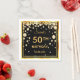 Eine Serviette für eine elegante schwarz-goldene 50. Geburtstagsfeier. Vorlagen für den Namen, das Alter und das Datum des Party. Goldene Buchstaben. Schwarze Hintergrundfarbe und ein goldenes Imitat. Mit glamourösen Imitaten goldenen Diamanten. (keine echten Diamanten) Der Hintergrund ist transparent, sodass Sie die Farbe an Ihr Thema anpassen können.