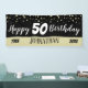 Herzlichen Glückwunsch zu diesem großen Meilenstein in Ihrem Leben! Dieses Banner hat einen lustigen Konfetti Top-Boarder mit benutzerdefinierten Datumsangaben und Namensoptionen. Das Banner des 50. Geburtstags kann bei Bedarf auf andere Termine umgestellt werden.Schwarz